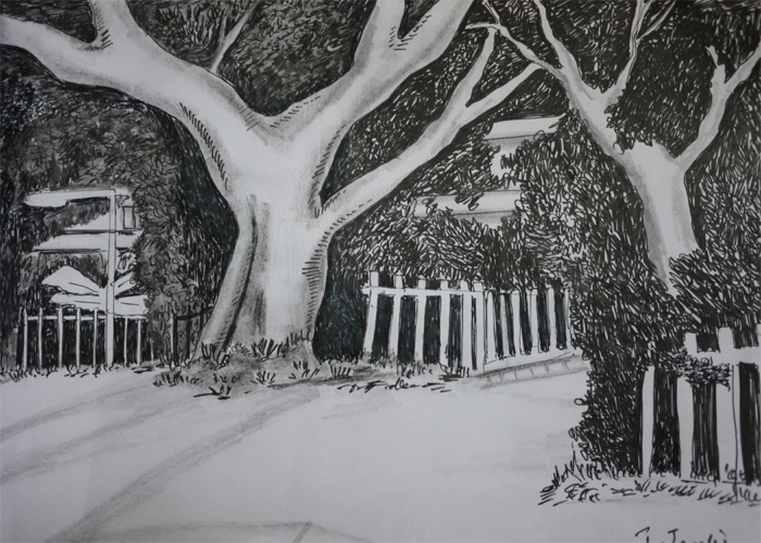 A plein air sketch of the railway quarters. I later painted this in watercolors. You can view the paintings in my Home page.